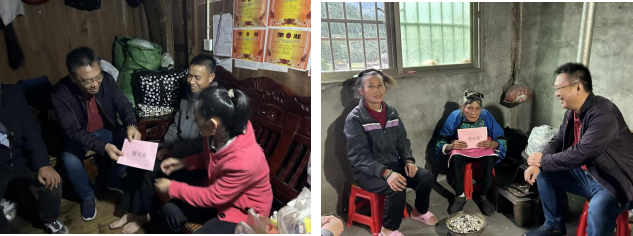 座談會后,黃堅達帶領(lǐng)考察組深入村民家中進行走訪,并對困難群眾發(fā)放慰問金。每到一戶,黃堅達都與村民親切交談,詢問他們的身體健康狀況、家庭收入來源、子女教育等情況,認真傾聽他們在生產(chǎn)生活中遇到的困難和問題,以及對未來發(fā)展的想法和訴求,鼓勵村民堅定信心,克服困難,通過自身努力創(chuàng)造更加美好的生活。
